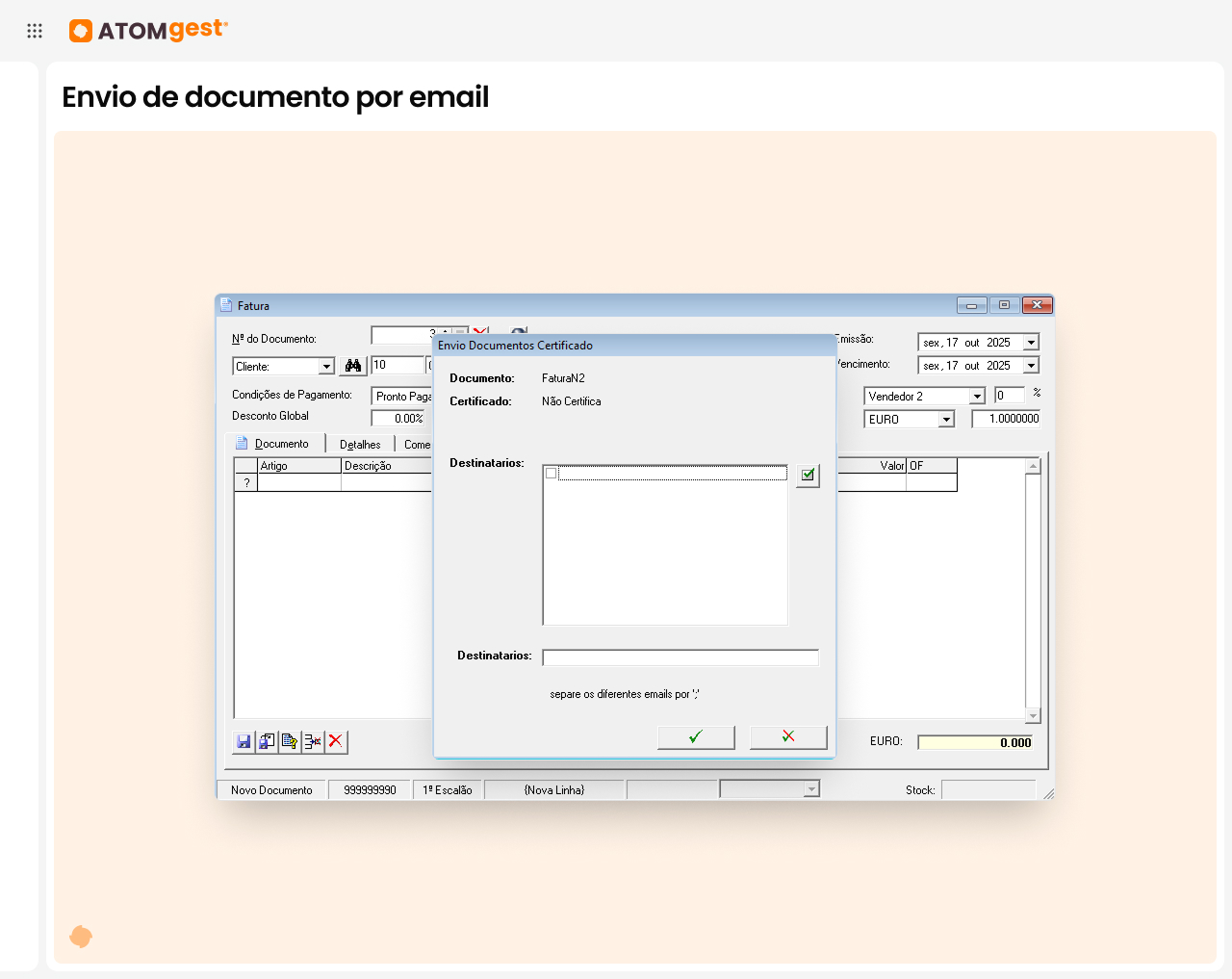 Sim! O ATOMgest® é certificado pela AT e está em conformidade com todos os requisitos fiscais e legais exigidos pelos sistemas de faturação em Portugal. Garantimos que a sua empresa esteja sempre em conformidade com as obrigações legais.